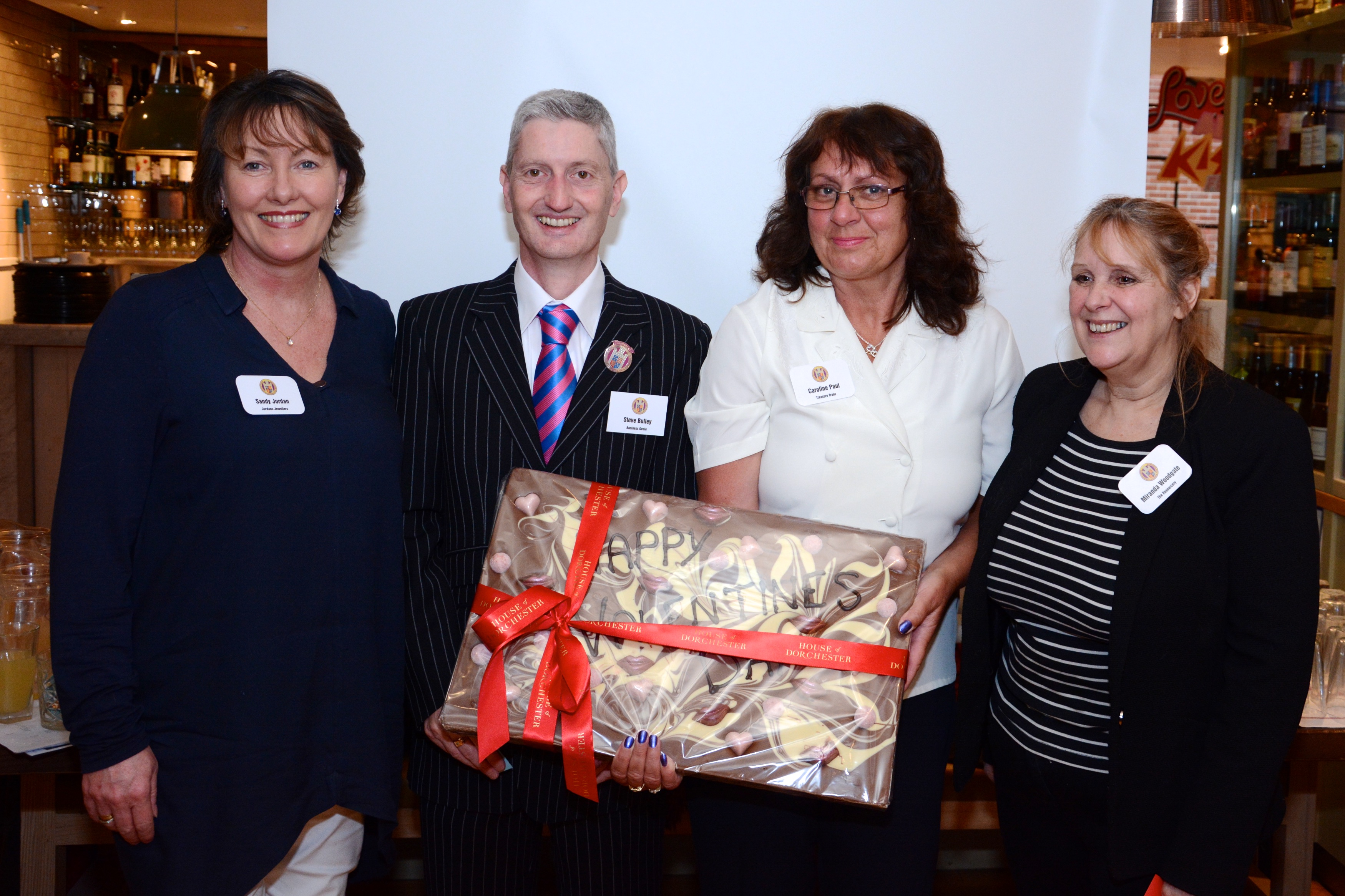 Prizes were won by Sandy Jordan of Jordan’s Jewellers who won the giant chocolate bar; Julie Grant of Blueloop, secured the meal voucher for two and Chris Pocock of Barclays, took home the Valentine’s hamper. Everyone attending also took away delicious chocolate samples provided by the House of Dorchester.